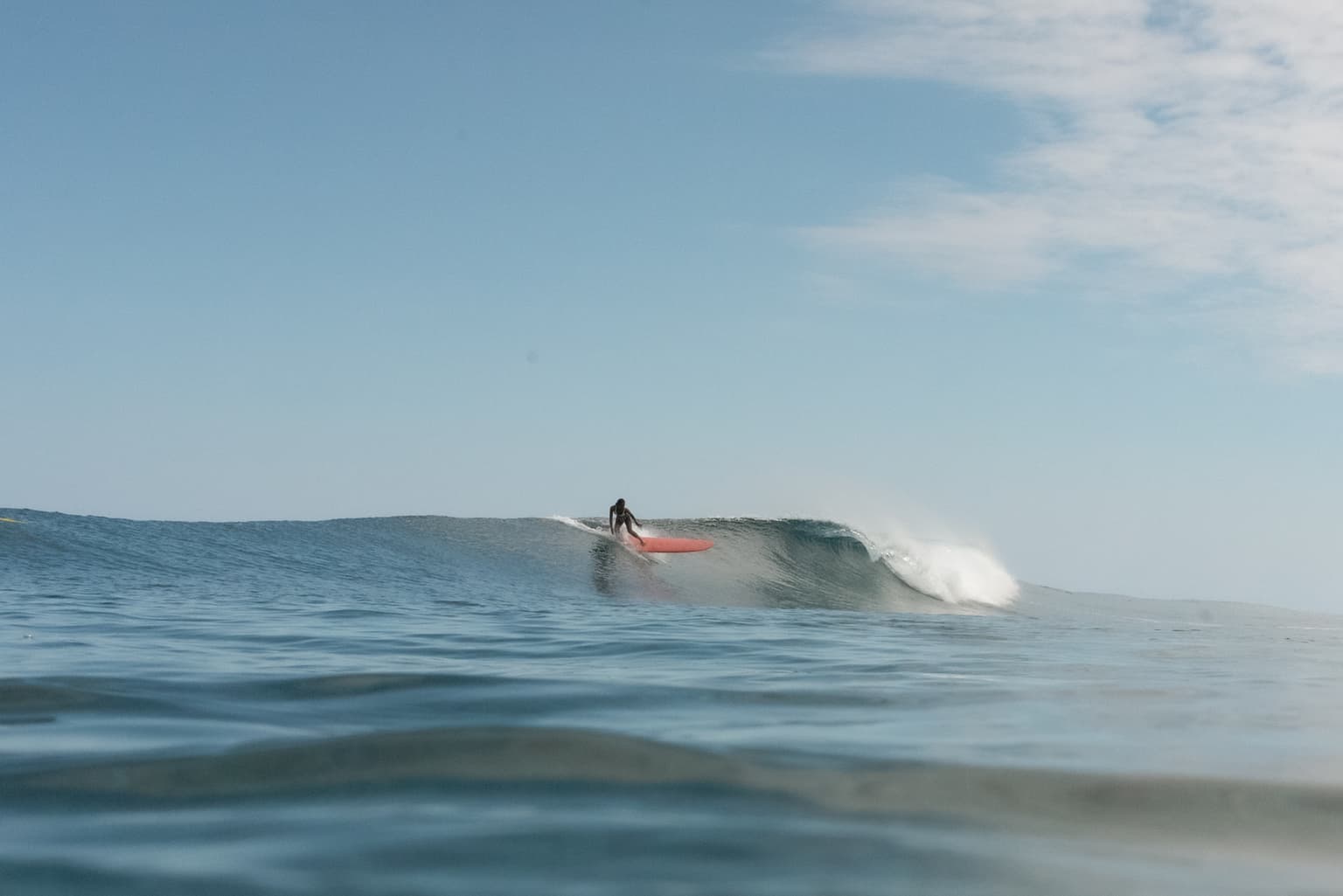 Cemetery, also known as Pesangan, is a 500 meter stretch of reef hosting about five left-handed peaks with the occasional right on offer. Regular footers might prefer to surf on the other side of the channel at Cemetery Right, which can be a fantastic wave on its day, but watch for strong currents pushing inside during bigger swells and full moon tides. Cemetery holds its shape in big swells, pushing huge mountains of water onto the reef, and it can handle a decent crowd due to the variety of peaks on offer. It’s best at low tide but can be surfed at high tide as well, though its exposed location means the quality is heavily affected by the wind. Anything but light or offshore winds can completely blow out the waves, making them very difficult to read and catch. On smaller days, this is a great wave for beginners and longboarders due to its forgiving takeoff, and can be a challenge for shortboarders to generate speed on the fat sections. On overhead+ days it can change so much depending on the swell direction and wind, but beginners should consider finding somewhere else to surf since it can a challenge to paddle out through the waves.