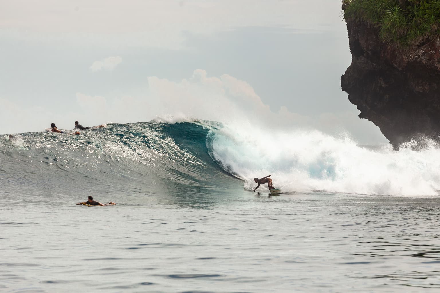 Rock Island is located next to Stimpy's – just a 10 minute boat ride from Catangnan. The wave is a long, powerful right-hander that is ideal for intermediate to advanced surfers when swell ranges from head high to double overhead. The break is divided into three distinct sections made up of open faces perfect for carving and the occasional barrel on wide sets. Rock Island shines in bigger swells, but it’s not for beginners or even intermediate surfers when it maxes out. On a good day, this spot promises an unforgettable surf session in a stunning location. With that said, surfing at Rock isn't always a walk in the park. A solid session here usually often involves steep drops, getting caught inside, and currents that will test your paddle fitness. It usually pays to have a little bit more foam when there's a lot of water moving. Be cautious not to sit too deep on the rock or drop in on closeouts. Rock Island can be surfed on any tide, but it works best at low tide to give the wave some shape.