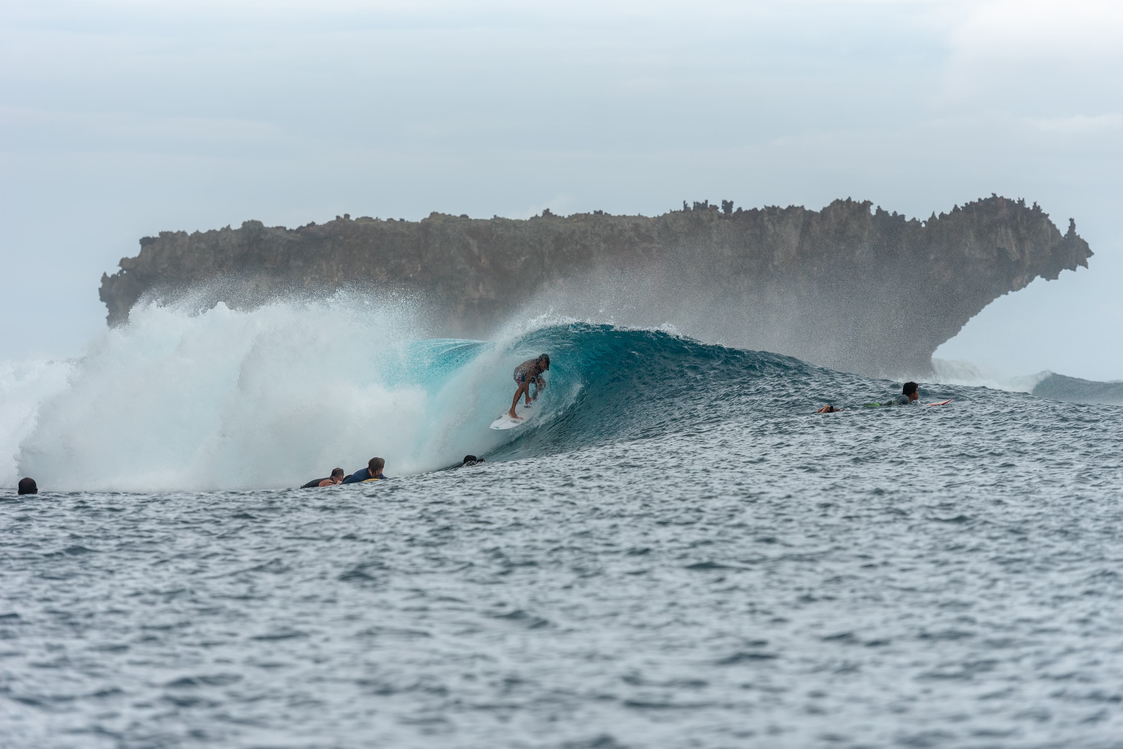 Left-hand reef break, reliable, varies from fun walls to powerful barrels.