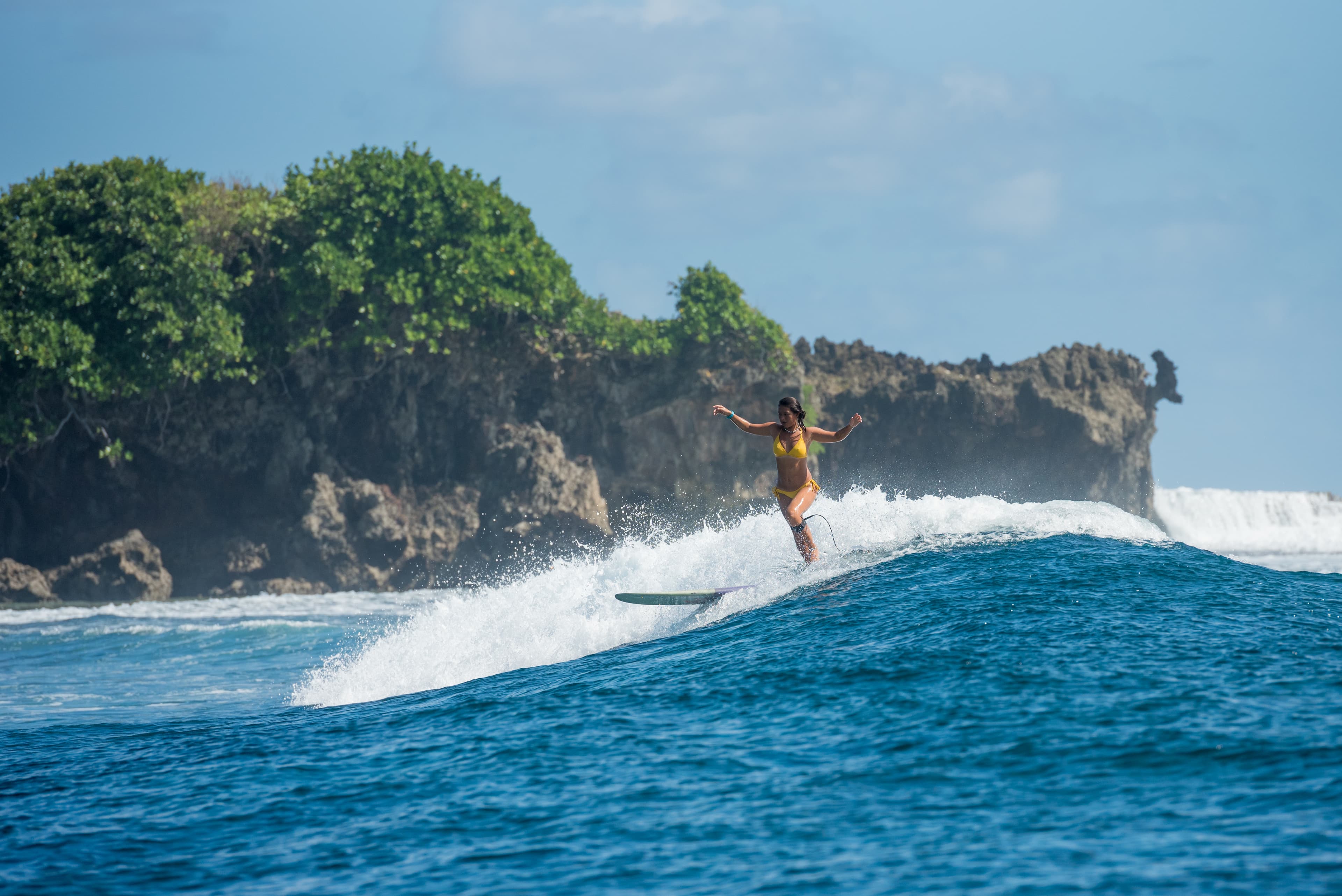 Stimpy's is accessible exclusively by boat. Several areas have boatmen willing to take surfers for the right price, but the most common departure point is next to Kanaway Surf School in Catangnan. The journey takes approximately 15 minutes and costs 250 pesos per person, typically requiring a minimum of two passengers. The boatman will wait or surf with you then take you back. Since Stimpy's is near Rock Island, you can check both spots before deciding where to surf. Keep in mind that the fare covers a 2 hour session, after which the boatman usually prefers to return to collect other surfers.